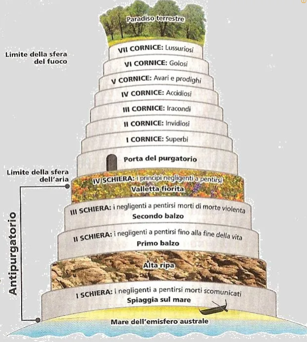 단테 알리기에리의 신곡 2부인 연옥편의 내용을 정리한 문서. 여기까지는 베르길리우스가 안내하는데, 베르길리우스는 세례를 받지 않은 고대 로마시대 시인이다보니 천국으로 갈 수 없어서 천국부터는 베아트리체가 안내를 도와준다.