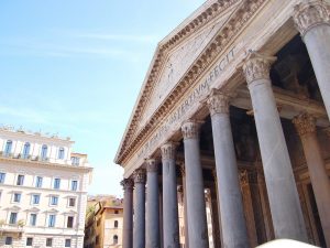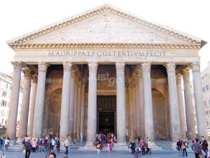엄청난 석재 덩어리로 보는 사람들에게 위압감을 주는 이집트 건축이나, 골격미를 중요시하는 그리스 건축에 비해 이 판테온 신전은 건축 자재로 둘러싸인 ‘공간’을 가장 중요한 요소로 삼은 건축이라는 점에서 건축사상 획기적인 전환점을 이루었다. 이러한 공간을 구축하기 위해 로마인들이 고안해낸 공법, 즉 천장 구조의 무게를 지탱해야 하는 기둥의 수를 최대한 줄이며 시원한 공간을 만들 수 있는 아치(arch), 돔(dome), 궁륭(穹窿) 천장(vault)의 건축법, 그리고 한번 굳으면 영원히 견고한 콘크리트 공법은 세계 건축사에 가히 혁명적인 사건이었다.