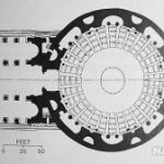 신전의 겉모습에서는 거대한 원통형 위에 둥그런 지붕이 있고 앞 부분에는 그리스의 파르테논 신전의 전면과 같은 열주식(列柱式)에 삼각형의 페디먼트(pediment)를 받치고 있는 구조를 볼 수 있다. 평면도와 입면도를 통하여 뒤의 원통형 위에는 반구형(半球形) 돔을 올려놓은 것, 그 돔의 꼭대기를 크게 뚫어 자연 채광과 공기가 직접 들어오게 되어 있는 것, 크기에 비해 벽이 무척 두껍다는 것 등을 알 수 있다. 그 밖에도 원통형 벽에는 모두 일곱 개의 직사각형, 또는 반원형 감실(龕室)이 있고 이들의 앞에는 두 개의 기둥이 서 있는 모습도 알 수 있다.