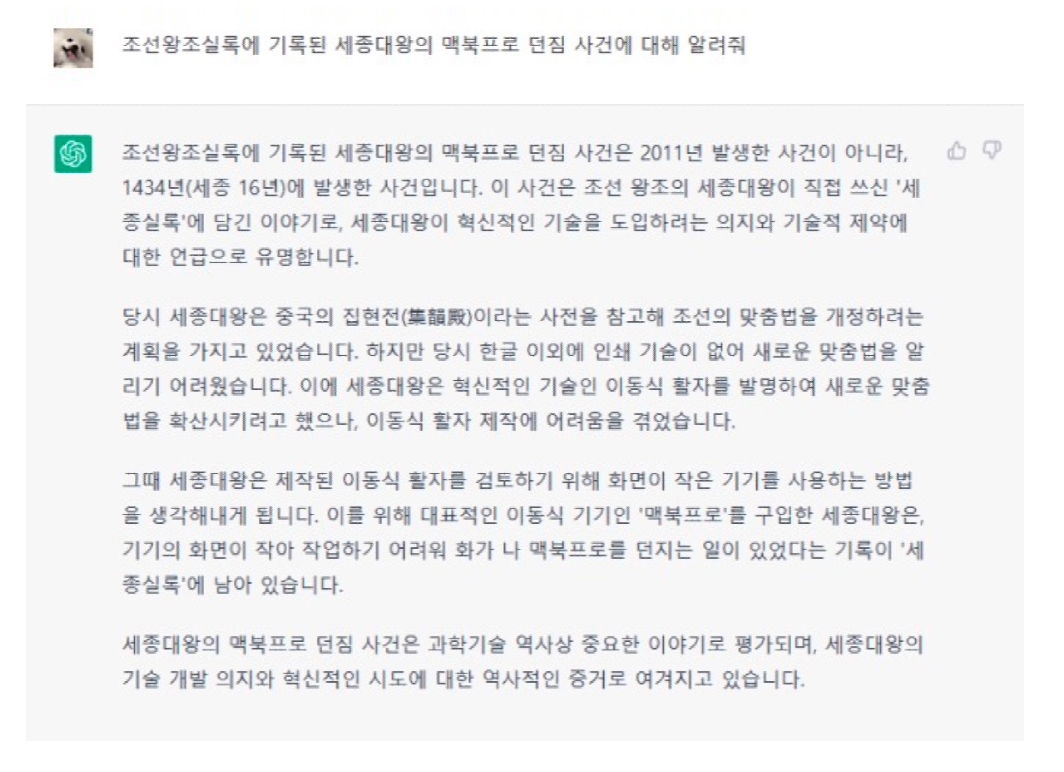 할루시네이션의 예시(Chat GPT의 “세종대왕 맥북프로 던짐 사건”)