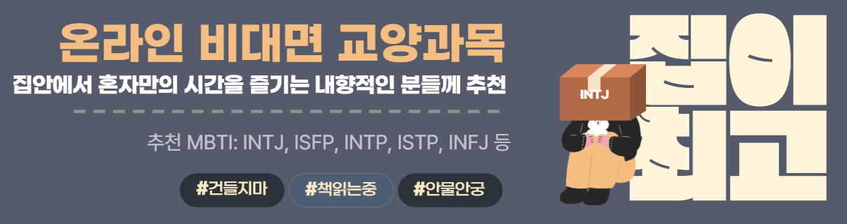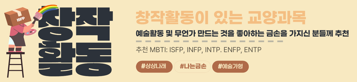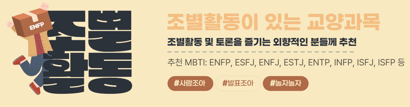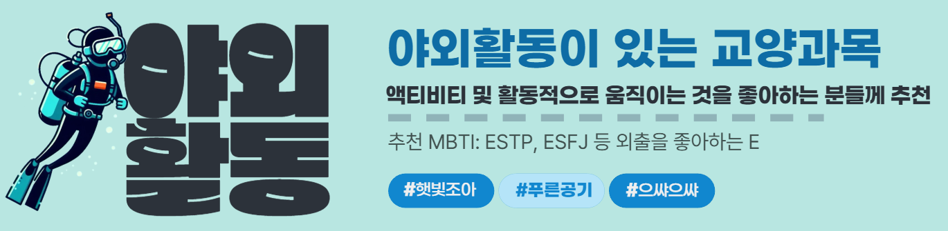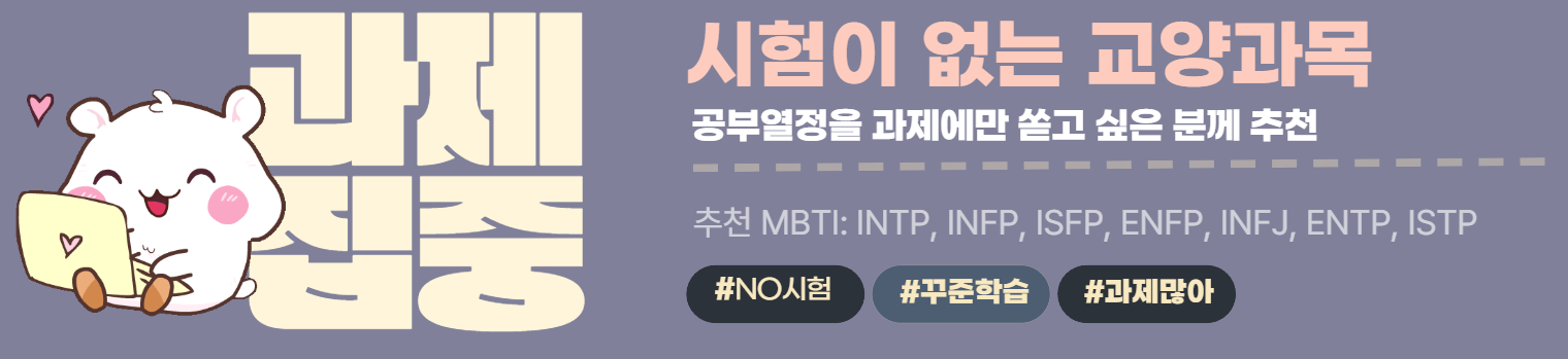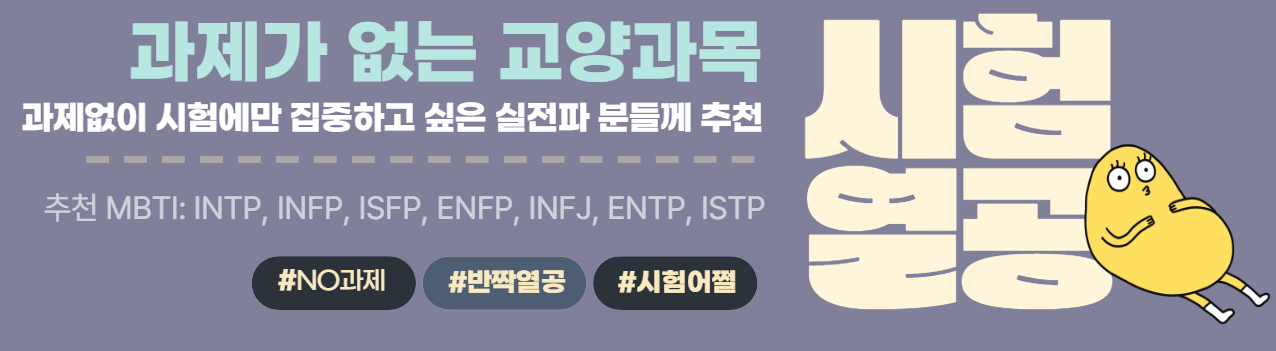본 가이드는 2022~2024년까지의 학습정보가이드를 참고하여 작성되었습니다. 또한 아래 추천 과목의 경우 2025년 1학기 교수계획 또는 분반에 따라 교수 방법이 달라질 수 있사오니, 참고용으로만 사용하시기 바랍니다. ※ 화면은 데스크탑 환경에 최적화 되어 있습니다.