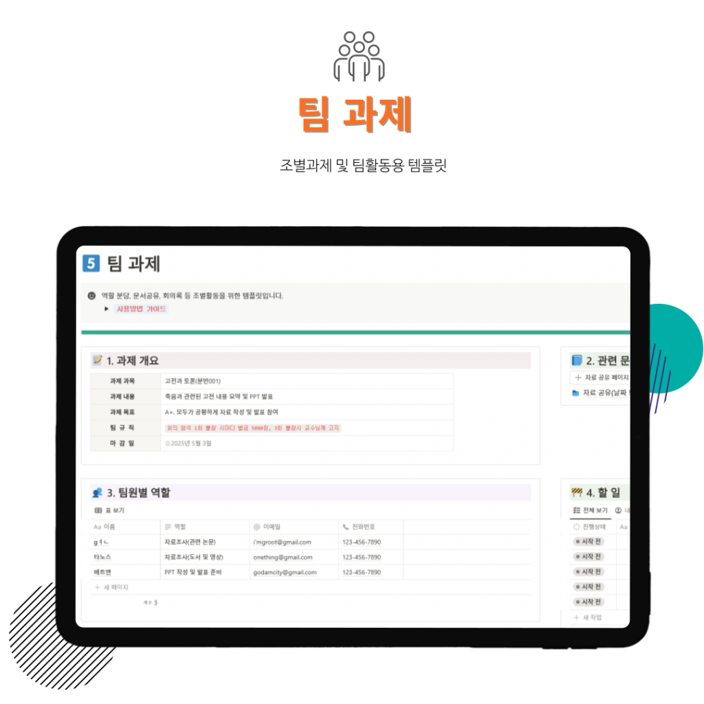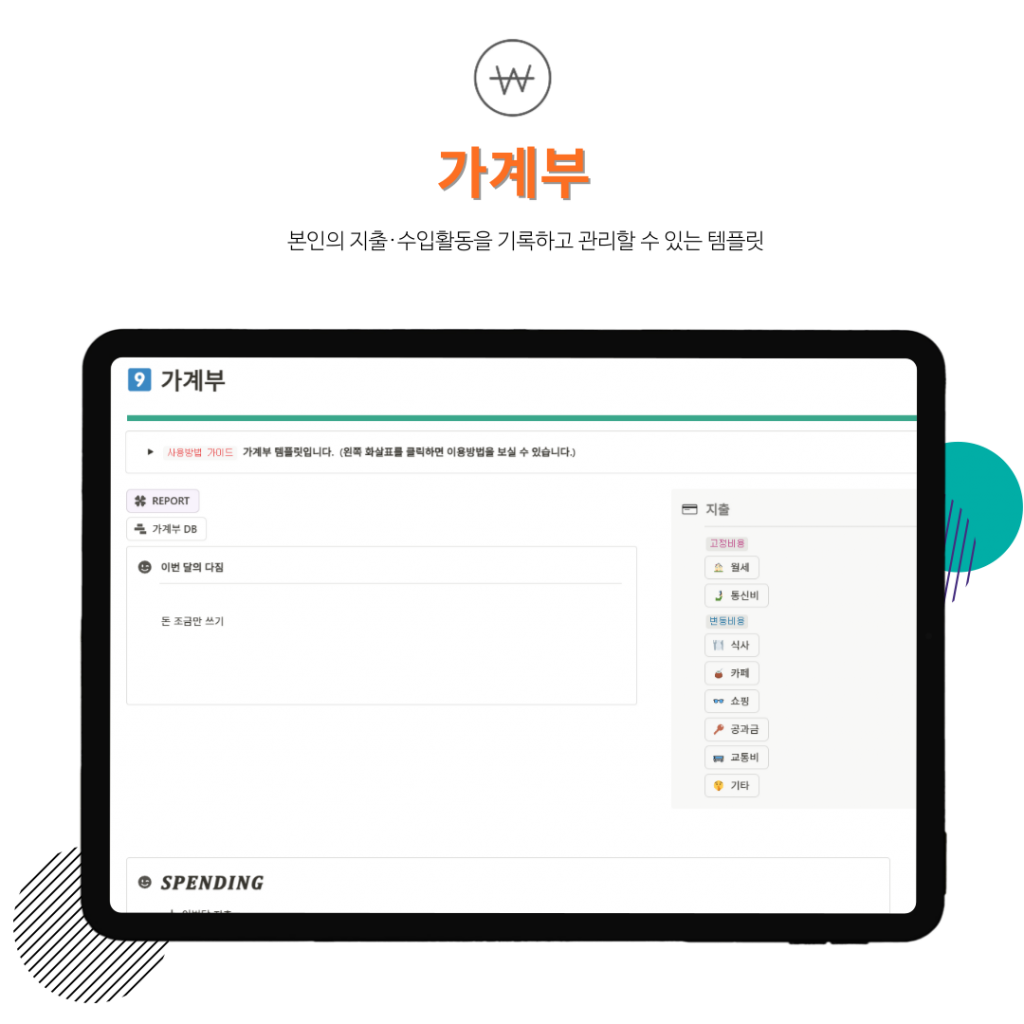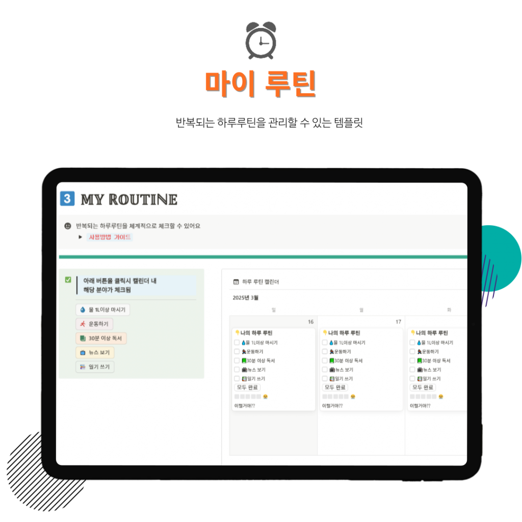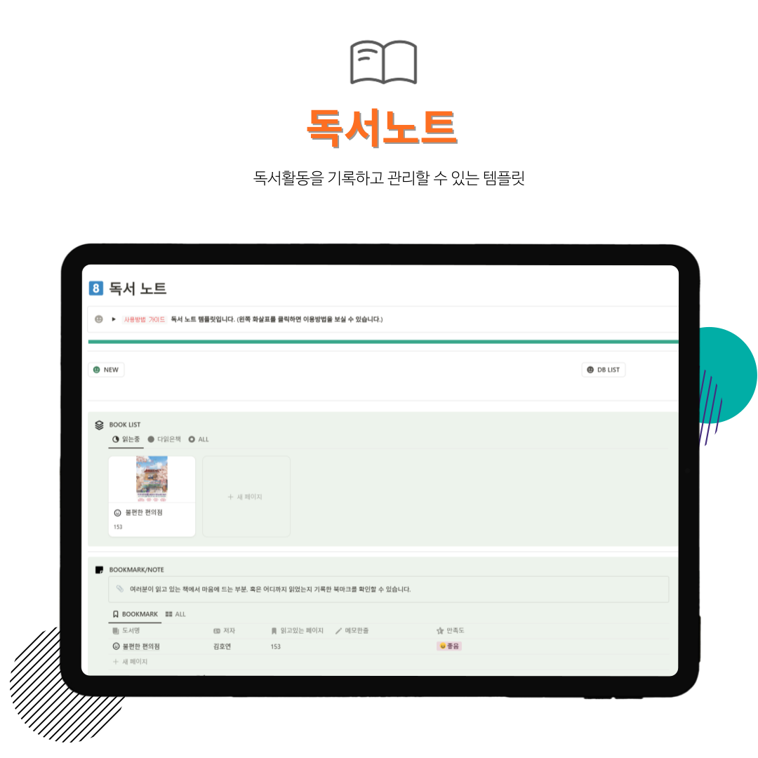 – 각 템플릿에는 각 페이지의 역할과 활용하는 방법이 적힌 가이드가 적혀 있어, 초보자도 쉽게 해당 템플릿을 활용할 수 있습니다.