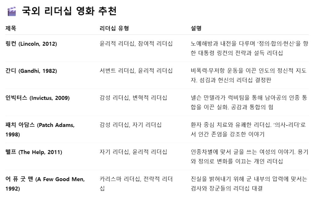 종합하면, 이번 내용들은 리더십을 화려한 카리스마나 외형적 성공으로만 이해하는 좁은 시각에서 벗어나, 실제 삶과 조직 속에서 어떻게 리더십이 발휘되고 또 왜 중요한지를 깊이 있게 통찰하게 한다. 나 또한 이 글들을 통해 리더십이 특별한 사람만의 능력이 아니라, 누구나 자신의 방식으로 발전시킬 수 있는 하나의 역량이라는 생각을 다시금 확신하게 되었다.