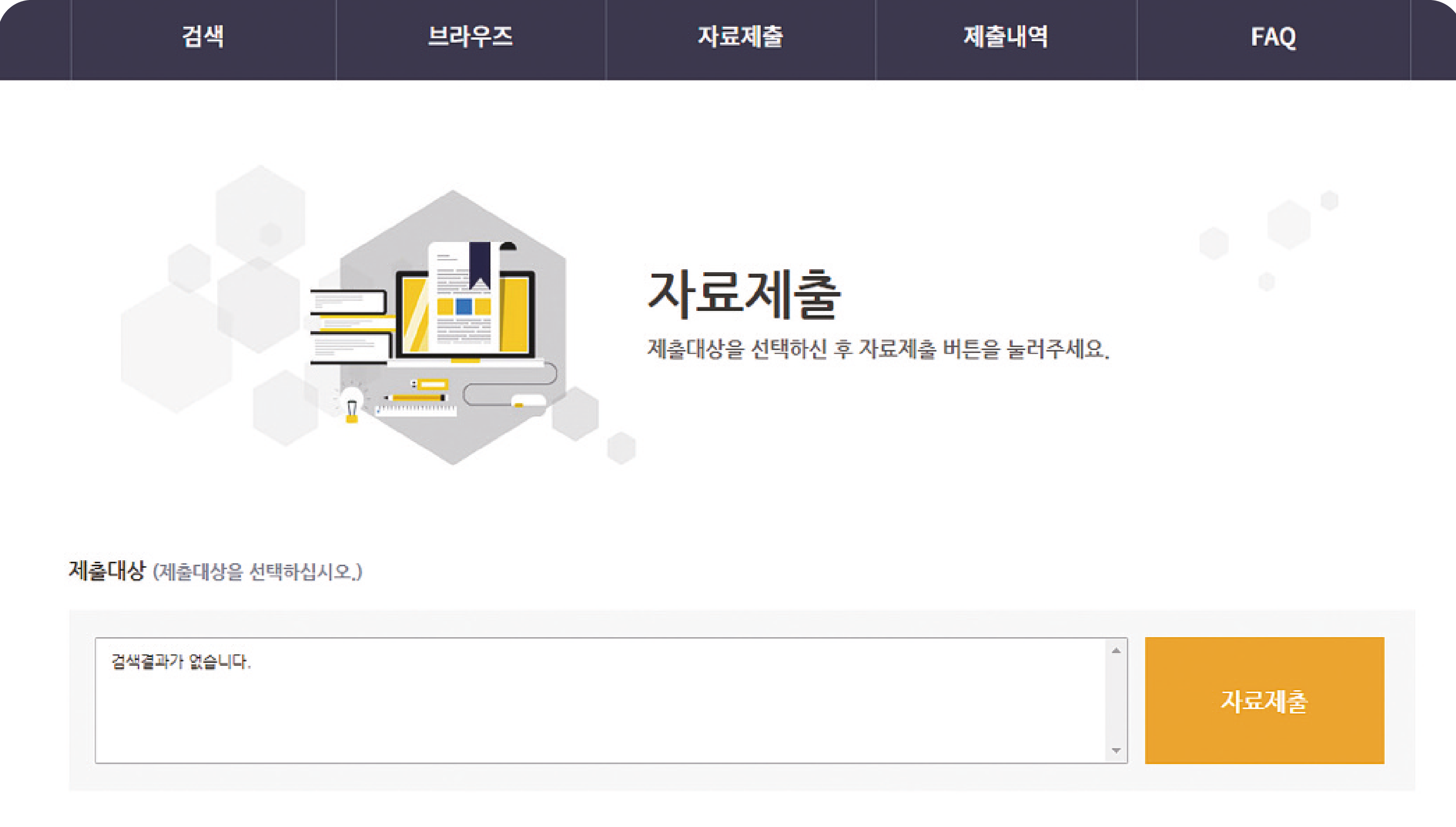 본인이 학위논문 제출대상자임에도 불구하고 ‘검색결과가 없습니다’라는 문구가 뜨면서 제출이 불가능하다면 단과대학별로 대상자 명단제출이 늦어지거나 누락된 경우로 도서관으로 문의하면 바로 제출이 가능하다.