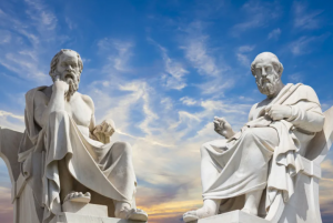 고대 그리스의 철학자 소크라테스는 아테네에 살면서 많은 제자들을 교육시켰는데, 플라톤도 그 중의 하나이다. 그러나 그의 사상 활동은 아테네 법에 위배된다 하여 사형을 당했다. 당시 아테네에서는 민주주의제도가 쇠퇴하면서, 사회적 황폐가 확대되는 상황이었다. 소크라테스의 사상은 그 당시의 지배계급인 귀족계급을 대변하고 있었는데, 새로운 신흥계급의 출현으로 반민주주의적인 귀족계급이 수세에 몰리고 있었다. 종래의 그리스의 유물론적인 자연철학에 대립하여 그는 ‘너 자신을 알라’라는 말을 기초로 하여 ‘영혼’에 대해 깊게 생각하면서 삶의 온당한 방법을 아는 것을 지식의 목적이라 하고 이로써 도덕적 행위를 고양시키는 것을 지향하였다. <출처: 철학사전>
