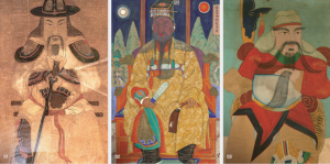 촉한의 무장이었던 관우가 전쟁의 신, 재물의 신, 무(武)의 신으로 추앙받은 것은 명청대에 소설화된 나관중의 『삼국지연의』가 유행하면서부터이다. 무장인 그가 위진남북조시대에는 장군이 되고, 수·당대에는 무성왕묘(武成王廟) 종사를 통해 국가의 사전(祀典)에 편입되었으며, 송·원대에는 후(侯)에서 공(公)으로 그리고 왕(王)으로 추존되고 명·청대에는 관우 신격화가 절정에 달해 황제(皇帝)에 등 극하고 신령(神靈)으로 숭배된다. 특히 종교적으로도 불교에서는 사찰의 수호신, 도교에서는 만능수호신, 유교는 충의(忠義)의 무신으로, 국가통치질서 확립 수단으로 이용되었다. <출처: 문화재청: 신이된 관우와 국사당의 무신도>